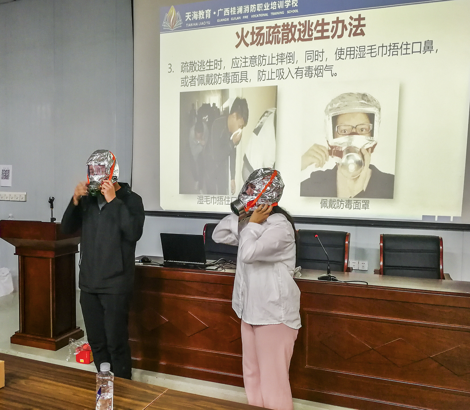 圖二為現(xiàn)場(chǎng)體驗(yàn)佩戴防毒面具。